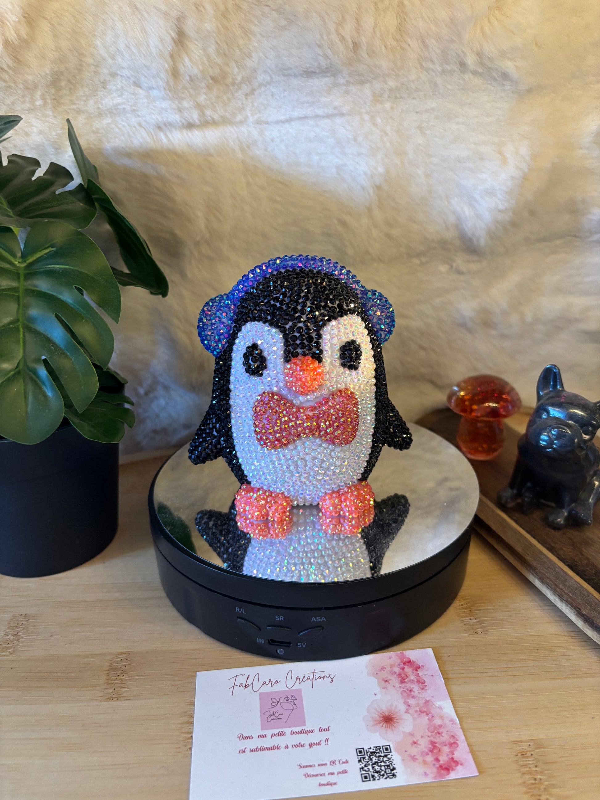 Voici le pingouin le plus cool de la banquise qui est strassée à la main.