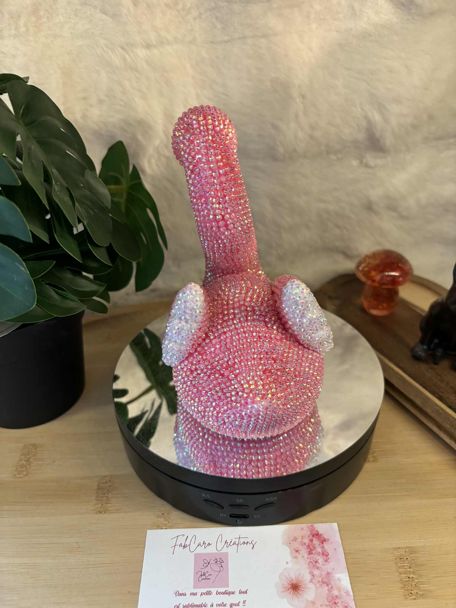 C'est un flamand rose strassé entièrement à la main ,